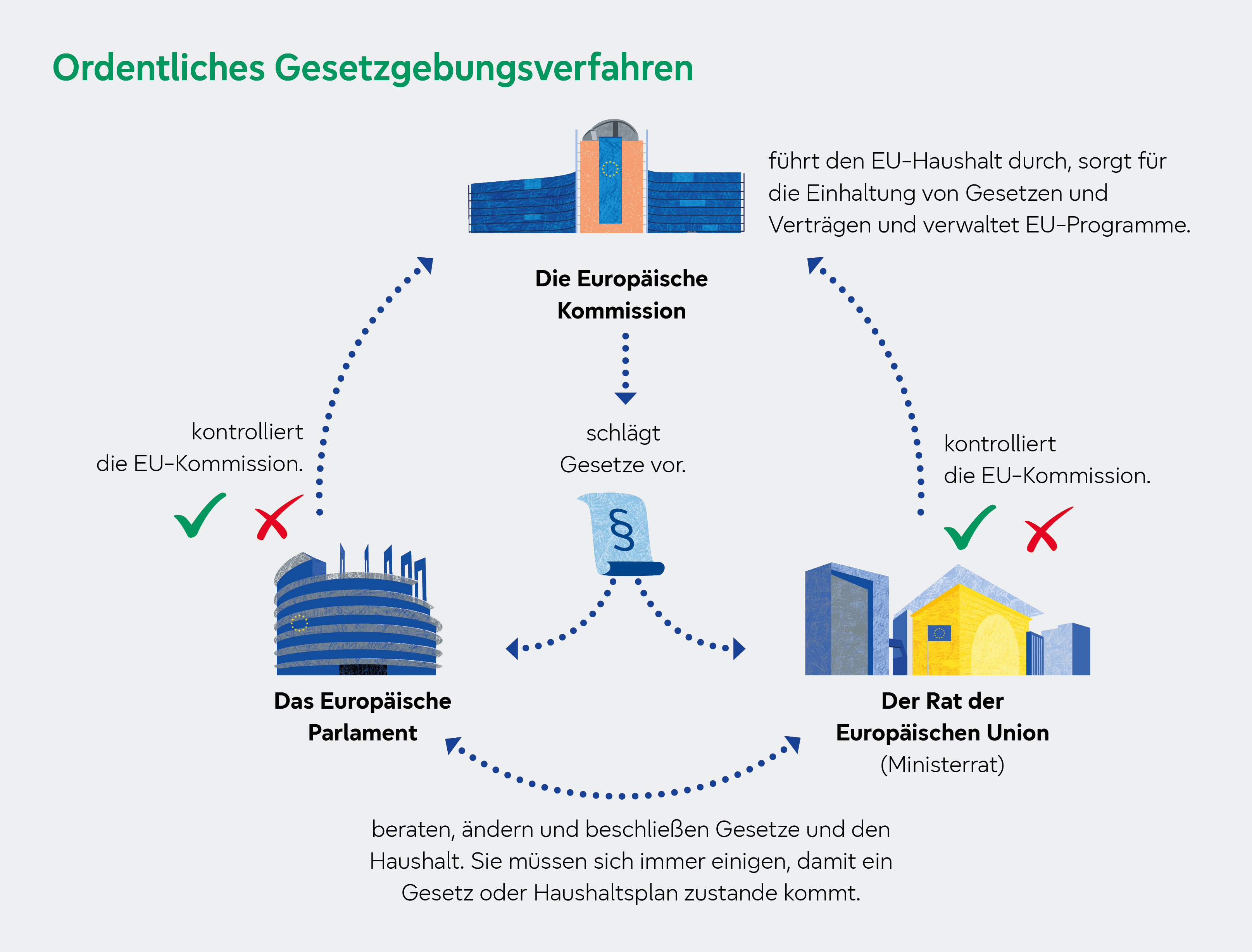 Hier werden die Institutionen sowie die Arbeitsweise der EU vorgestellt, insbesondere die Rolle von Europäischem Parlament, Kommission und Rat der EU.